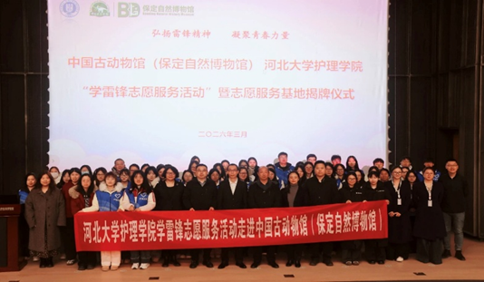 3月4日,在学雷锋纪念日到来之际,河北大学护理学院与中国古动物馆(保定自然博物馆)联合举办了学雷锋志愿服务活动暨志愿服务基地揭牌仪式。