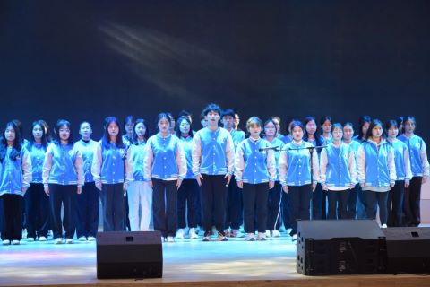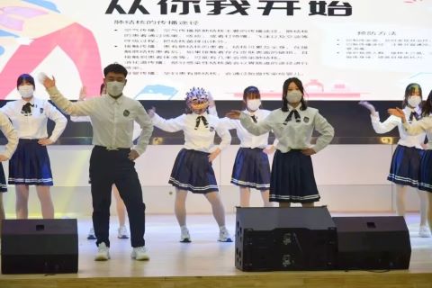 而后,文艺汇演正式开始。河北大学带来手势舞《拜拜,结核病》和《孤勇者》合唱节目。